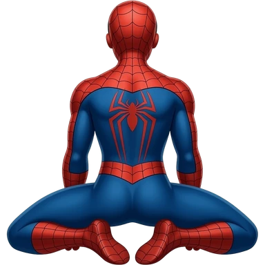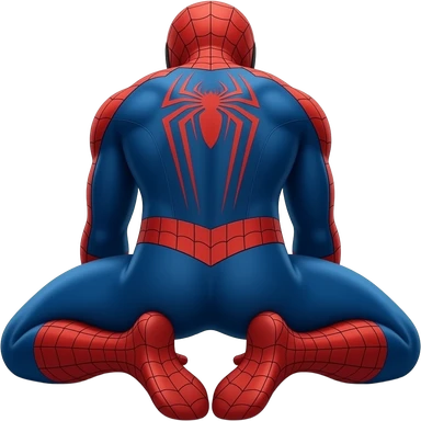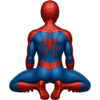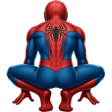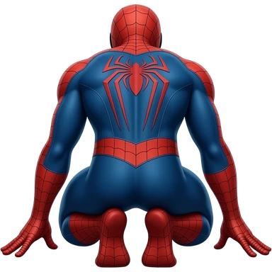 spiderman but only the back side of him kneeling down with his feet on his tip tows and his hands in between his feet, while he is slightly hunching over looking down emoji