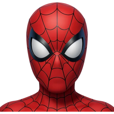 3D emoji of Spider-Man's face, with red mask, black webbing pattern, and large white eyes in glossy emoji style." emoji