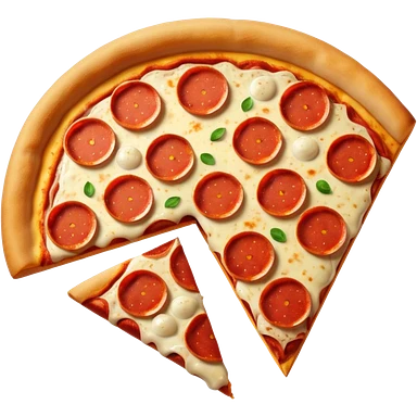 "A whole pepperoni pizza, hyper-realistic, glossy 3D illustration, soft studio lighting, bright red pepperonis, yellow cheese, brown crust, white background, iOS emoji style." emoji