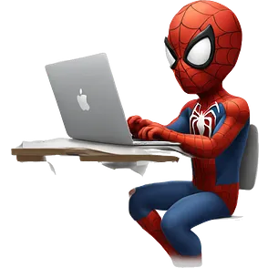 Spiderman working on a laptop emoji | AI Emoji Generator
