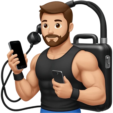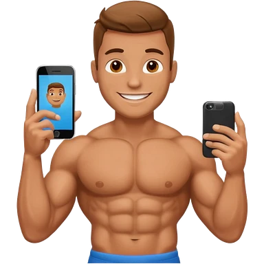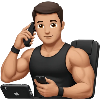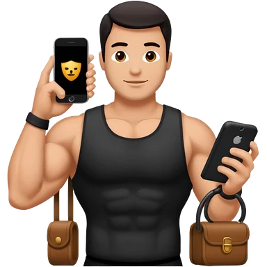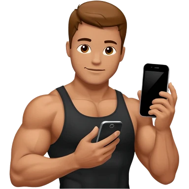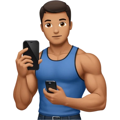 Mec musclé avec un téléphone dans les mains qui navigue sur so téléphone emoji