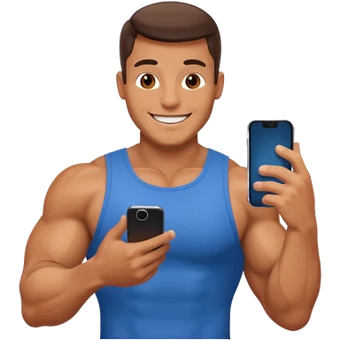 Mec musclé avec un téléphone dans les mains qui navigue sur so téléphone qui sourit emoji