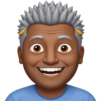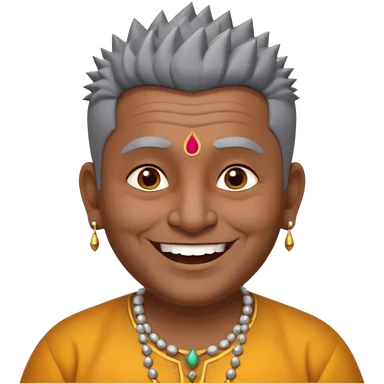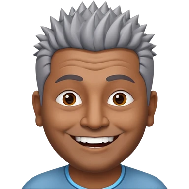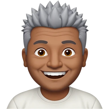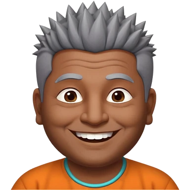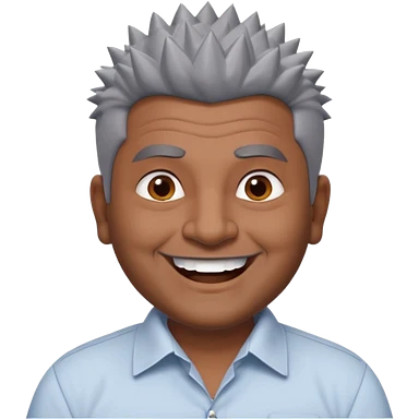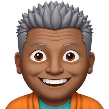 50 yr old indian man, dark skin, grey hair, big smile, white teeth, chubby, no moustache, clean shaven, spiky hair emoji