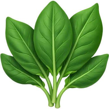 spinach leaves, small handful, fresh, vibrant green, smooth oval, delicate veins, slight curl, soft glossy, tender, no bowl, no water, no packaging, soft lighting, emoji scale emoji
