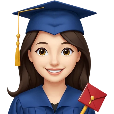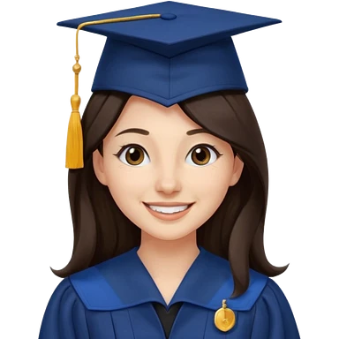 带着学士帽的,深棕色头发,黄种偏白皮肤的,高鼻梁,不戴眼镜的女博士生 emoji