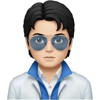 Michael Jackson is white, wearing completely black smokey Ray-Ban glasses, a white jacket, and a blue shirt. emoji