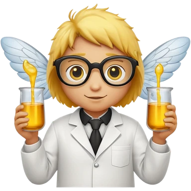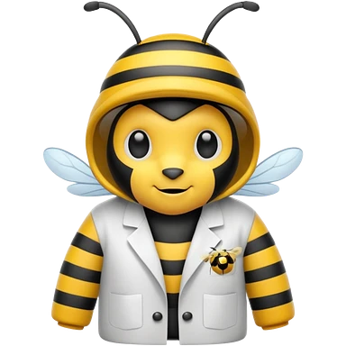 a bumblebee wearing a white lab coat holding a beaker emoji