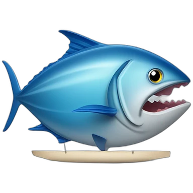 realistic tuna fish can sowing the blue shape of a sailling boat on a sea background emoji