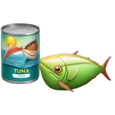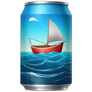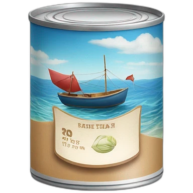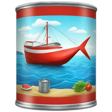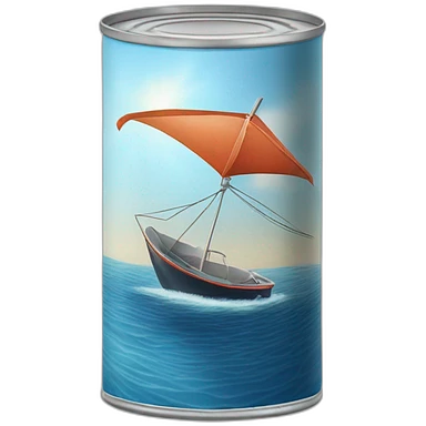 realistic can of tuna fish sowing the shape of a sailling boat on a sea background emoji