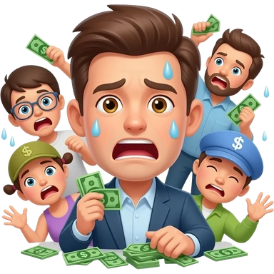 various people panicking, losing money, and sweating emoji