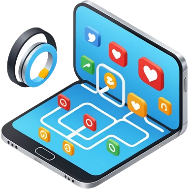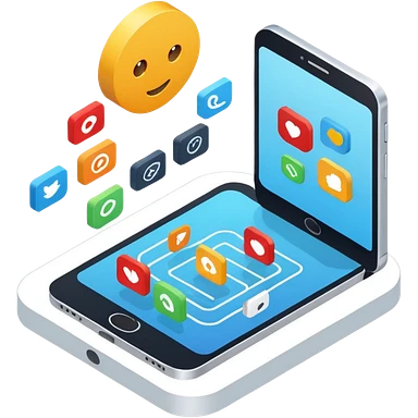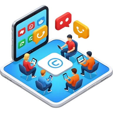 isometric, image of multi-channel experience with Teams, Mobile, Chat, Portal emoji