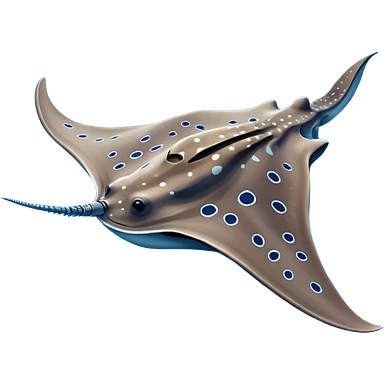 Spotted eagle sting ray with wide wingspan and long stinger tail viewed from above emoji | AI Emoji Generator