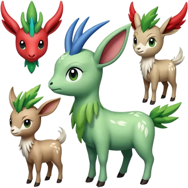 Xerneas-Sprigatito-Gogoat-Celebi-Shaymin-Virizion-Fakémon-Pokémon-fusion-creature (full body) emoji