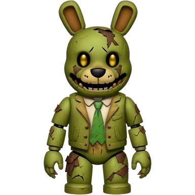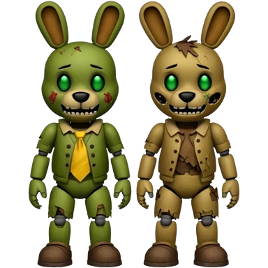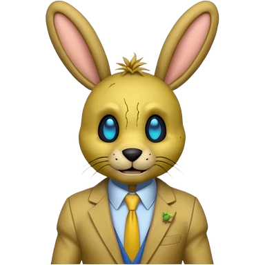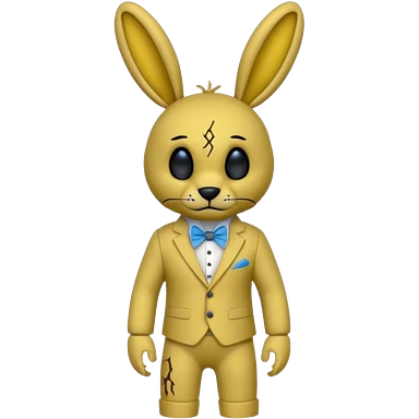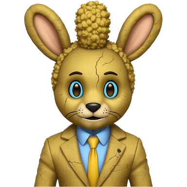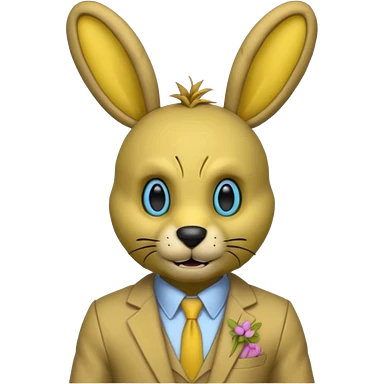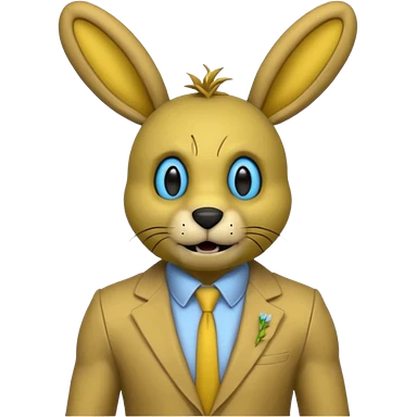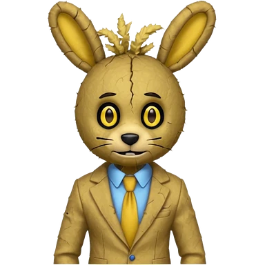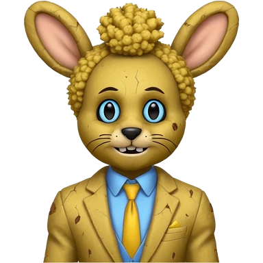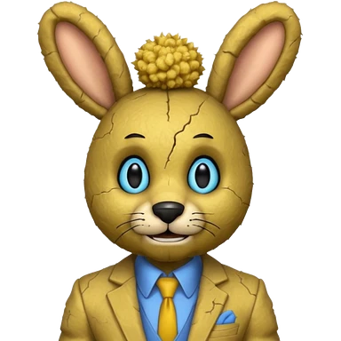 springtrap yellow damage hare suit with hare ears blue eyes with strands of 3C hair size of a small toothpick sttcking up emoji
