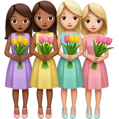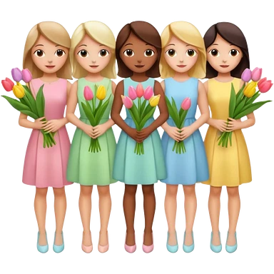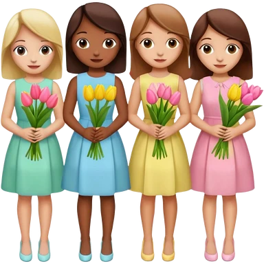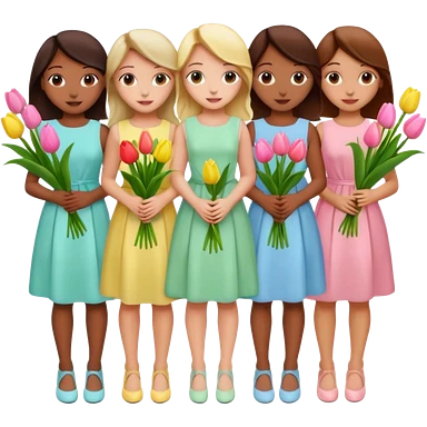 spring girly event - 5 girls wearing pastel dresses holding tulips emoji