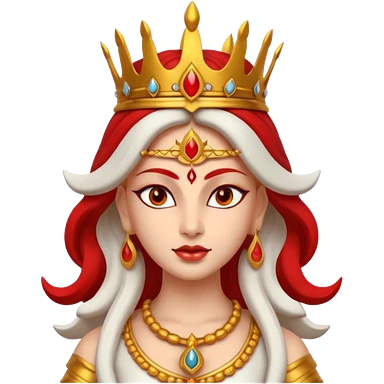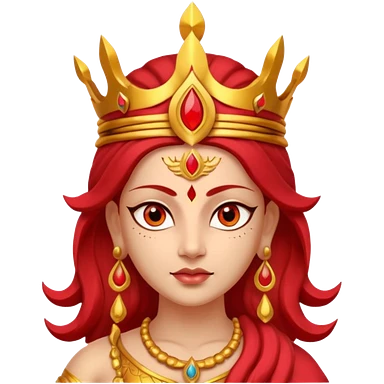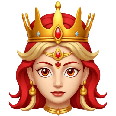 Hindu goddess Durga portrait, head and shoulders only, fierce warrior look, red and gold crown, powerful eyes, divine aura, 3D cartoon, mobile game icon style, clean background, no text, no watermark emoji