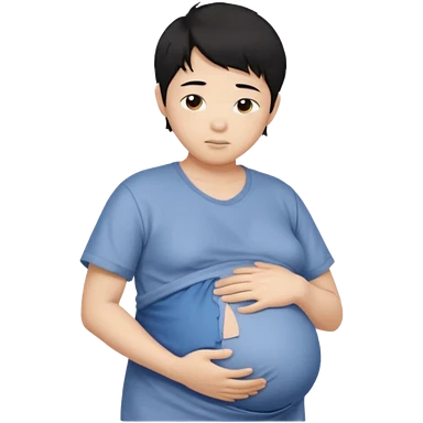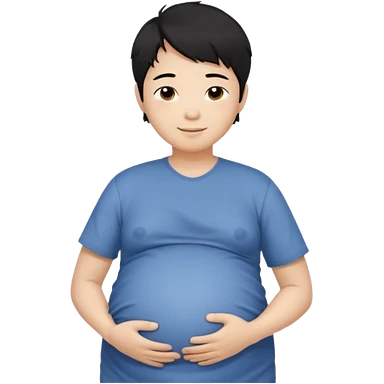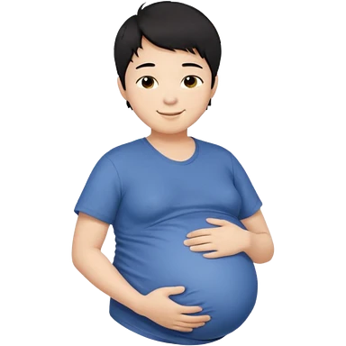 pregnant asian boy with short messy black hair holding his belly embracing his pregnancy emoji