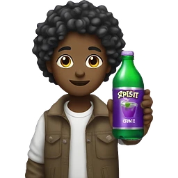 Black kid with wavy hair holding sprite bottle with purple liquid in it emoji