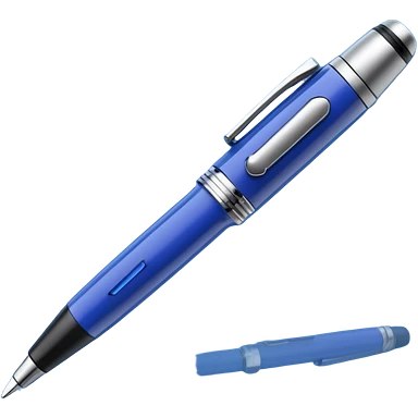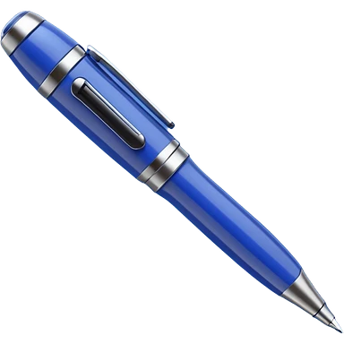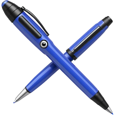3D render of Hidden Camera Pen, secret agent spy gear aesthetic, hidden mechanisms, glossy blue ballpoint pen with a glass lens tip, sleek tactical texture, Apple emoji style, isolated on white background --v 6.0. emoji