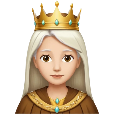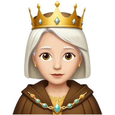Queen with long white hair – jeweled golden crown, red dress. emoji