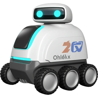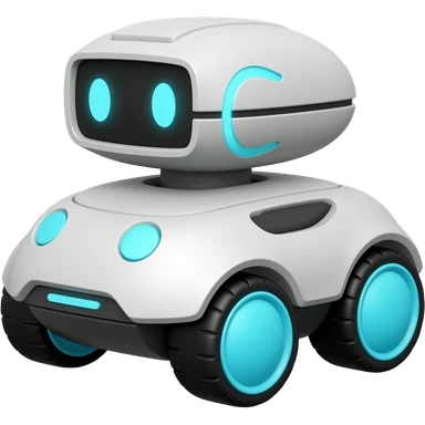 White solid delivery robot with 2 wheels at the front and 2 big wheels on the back emoji