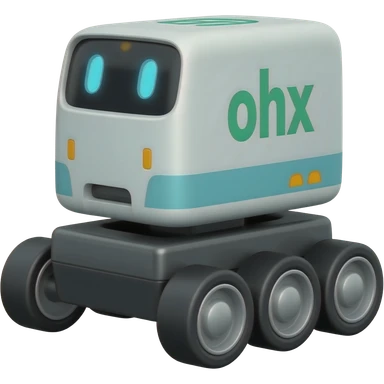 Solid rectangle Delivery robot with display showing blue eyes 6 wheels and fridge design emoji