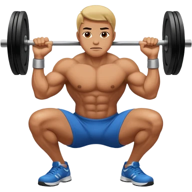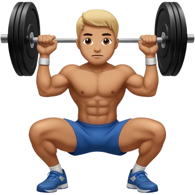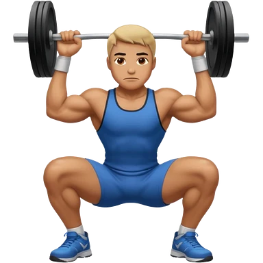 A boy with dark skin, curly hair is doing an overhead squat with a lot of weight on the barbell emoji