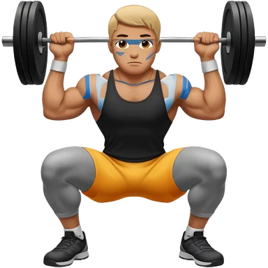 A boy with fair skin, black front spike and wearing a black shirt is doing an overhead squat with a lot of weight on the barbell emoji