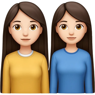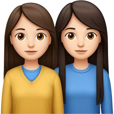 generate me emojis of sisters, one should look older, the other younger. the older one has dark brown hair, long, straight, the younger one is slightly lighter, also straight, long. clothes are any in principle, the main thing is that they more or less look like each other emoji