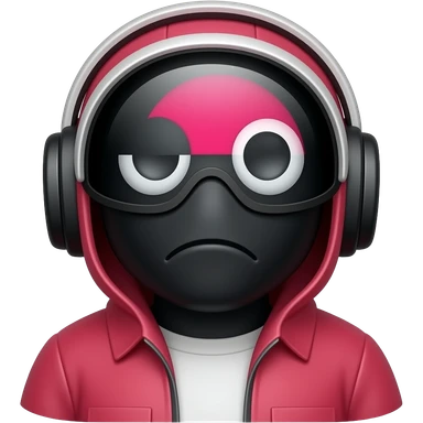 guard from Squid Game Round 6 wearing pink jumpsuit and black mask with white square, apple emoji style emoji