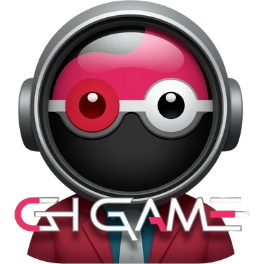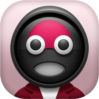 guard from Squid Game Round 6 wearing pink jumpsuit and black mask with white circle, apple emoji style emoji