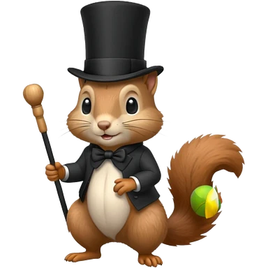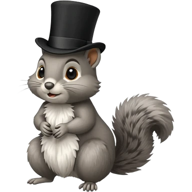 Squirrel (All of its fur gray colored), with a completely black tophat emoji