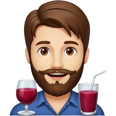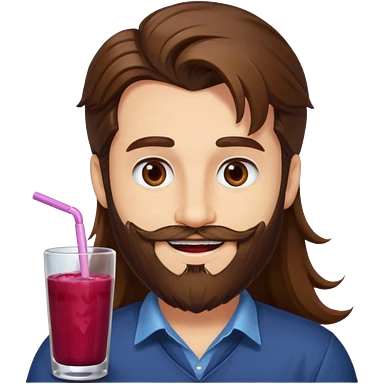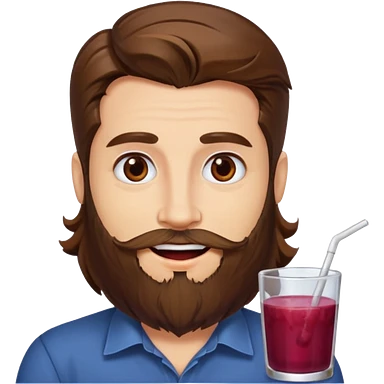 bust man long brown hair brown eyes medium beard white skin with berry juice stained lips grin emoji