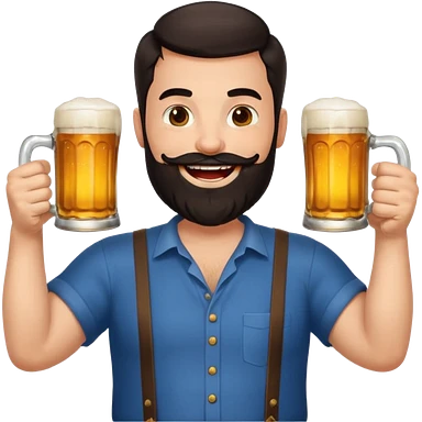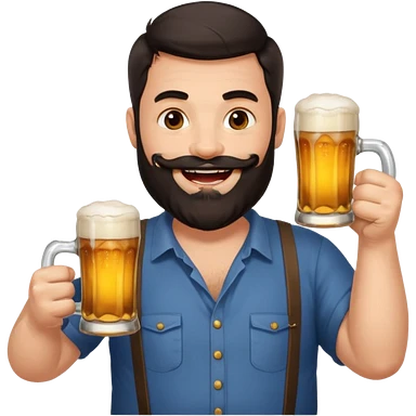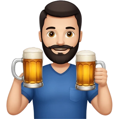 big man in lotus pose, bright skin, dark beard and dark short hair, holding beer mugs emoji
