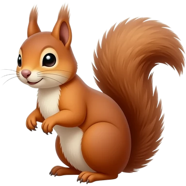 Cute baby red squirrel face smiling with bushy tail, whole squirrel emoji