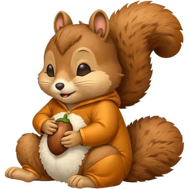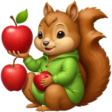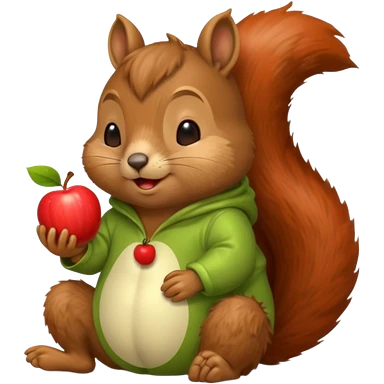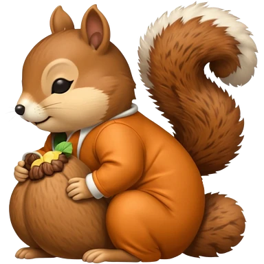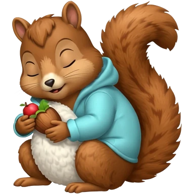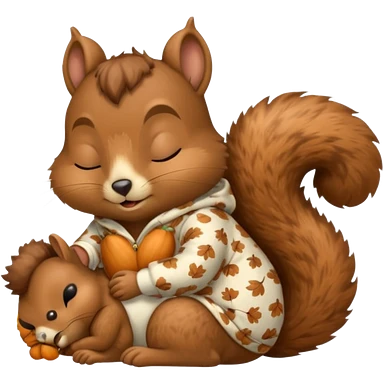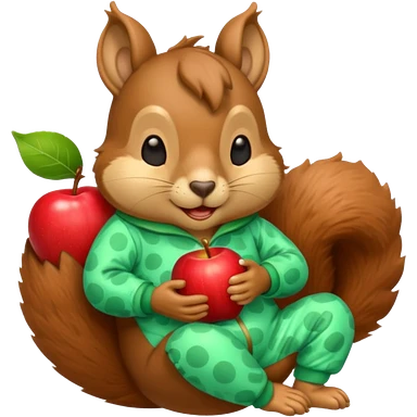 squirrel in acorn pajama suit snoring with holding apple emoji