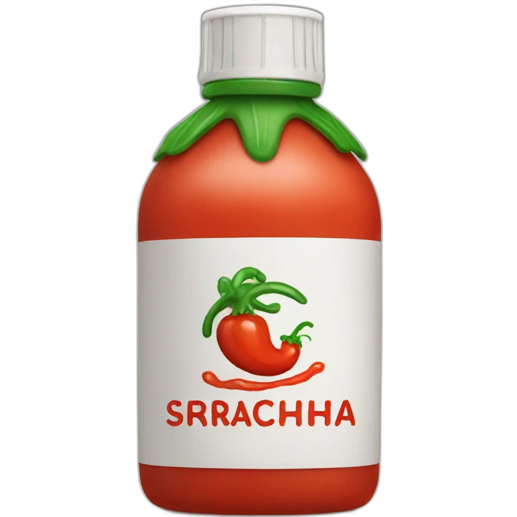 sriracha bottle, upright, bright red, green nozzle cap, translucent, thick glossy red sauce, simple, no label or branding, no dish or extras, apple emoji style, soft lighting, emoji scale emoji