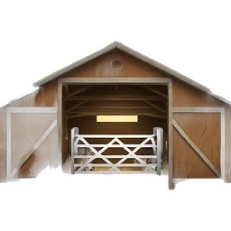 Equestrian stable exterior, isometric dollhouse-style, realistic emoji