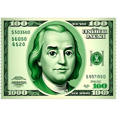 money face emoji. The face should be bright yellow, with exaggerated dollar-sign eyes glowing in neon green, and a tongue sticking out shaped like a crisp $100 bill. Add a shiny, golden aura behind the face emoji