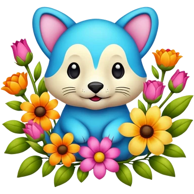 а white cat blue eyes a pink ribbon cutely laying emoji