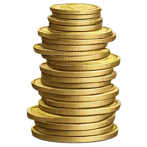 Stack of coins in gradient of turquoise, blue, pink, purple, and coral color withut letters emoji