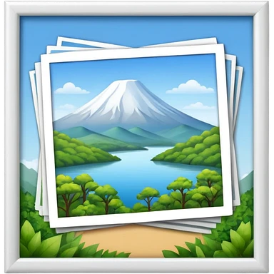 stack of photographs white frame and inside showing nature pic emoji