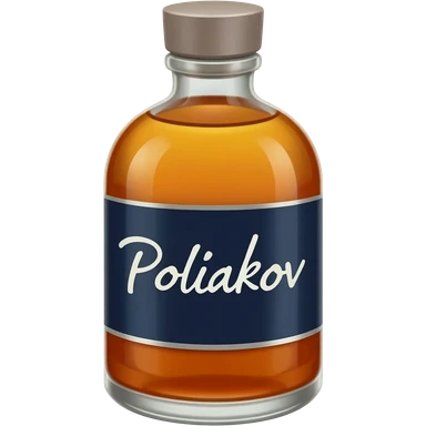a bottle of poliakov with translucide liquid, a dark blue label with "Poliakov" in white emoji
