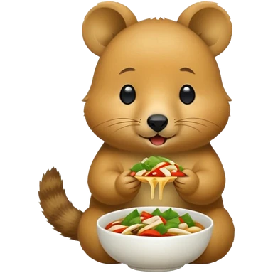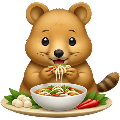 A bowl of Vietnamese Bún Thịt Nướng - rice vermicelli noodles with grilled pork, herbs, bean sprouts, and fish sauce emoji
