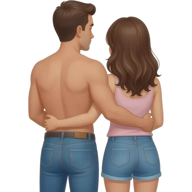 standing naked man and naked woman with butt hugging emoji