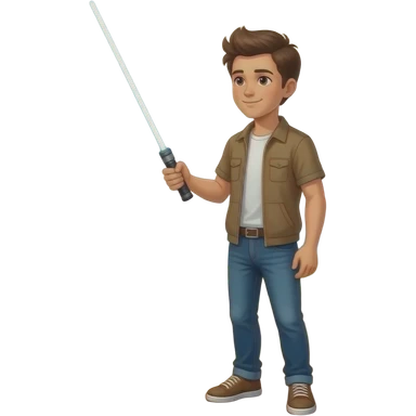 Clash of Clans aesthetic: Cinematic heroic Star Wars light sabre Emoji, rendered in a 3D vector-style similar to standard emojis with minimal shading and bold, simplified shapes. A compact, vibrant energy blade with a neon-hued, glowing edge . Stylized with a touch of interstellar elegance and a soft glowing outline, capturing the essence of a legendary energy blade with a friendly, playful manner! emoji