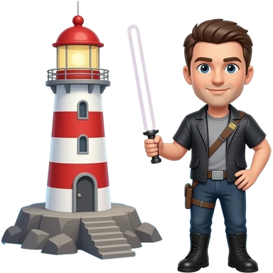 super emojiscom bro close to a lighthouse 3d close to the ocean with star wars emoji