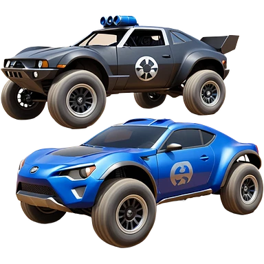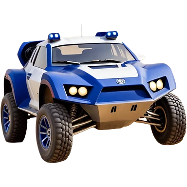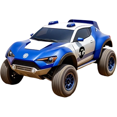 Star Wars’s Range trooper’s police evil darkly night blue Dirty and dented Local Motors Rally Fighter off road race car hot rod meets 2013 scion fr-s trophy truck-style basher flying down a dusty road (silver wheels) emoji