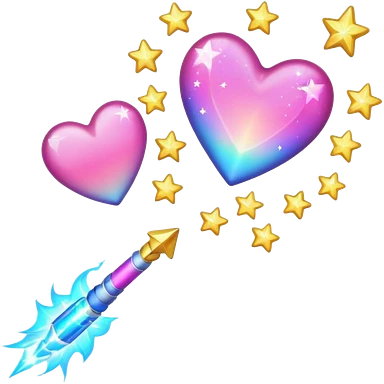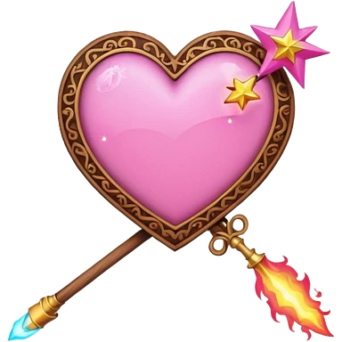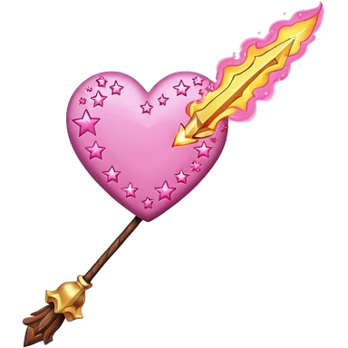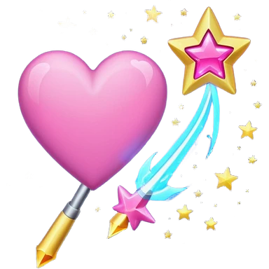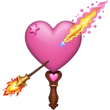 wand with a shooting star pink heart on fire like the heart is the shooting star emoji emoji