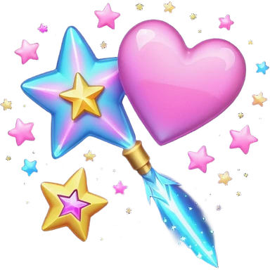 wand with a shooting star pink heart like the heart is the shooting star emoji emoji